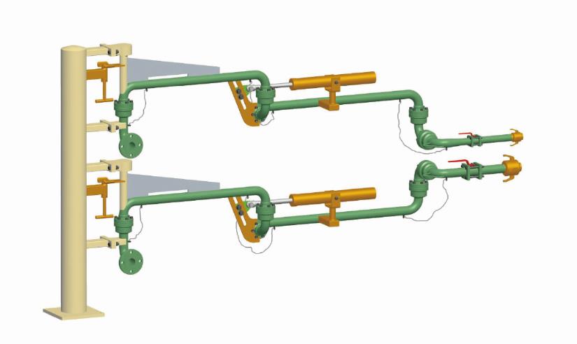 4. 外臂:可在水平面和垂直面的范圍內(nèi)轉(zhuǎn)動(dòng),主要用于裝卸臂同槽車、槽船調(diào)整對(duì)接工作位置的部件